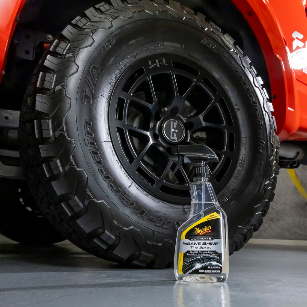 Maximera däckens glans och hållbarhet med Meguiar's Ultimate Insane Shine, för en reflekterande och skyddande finish.